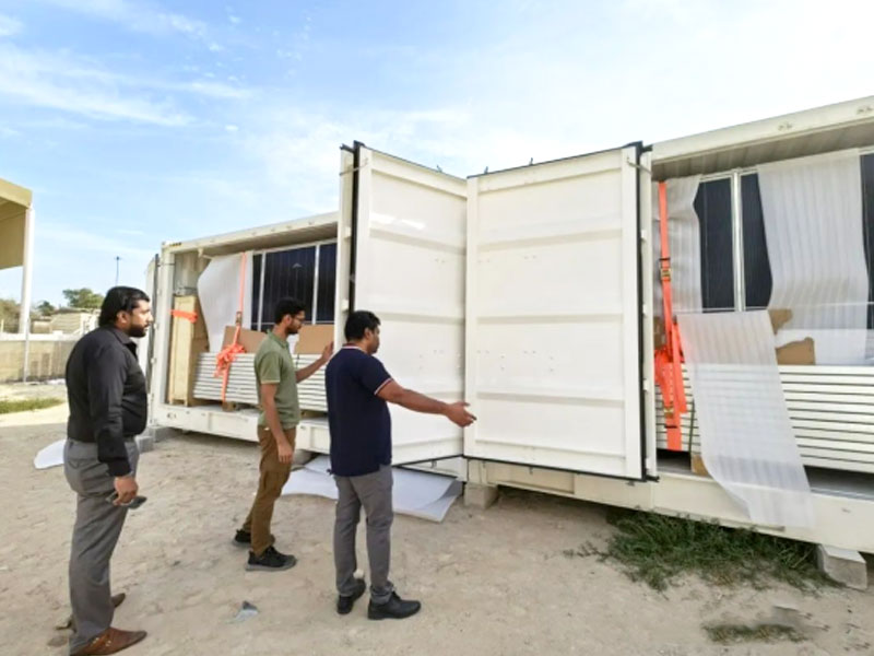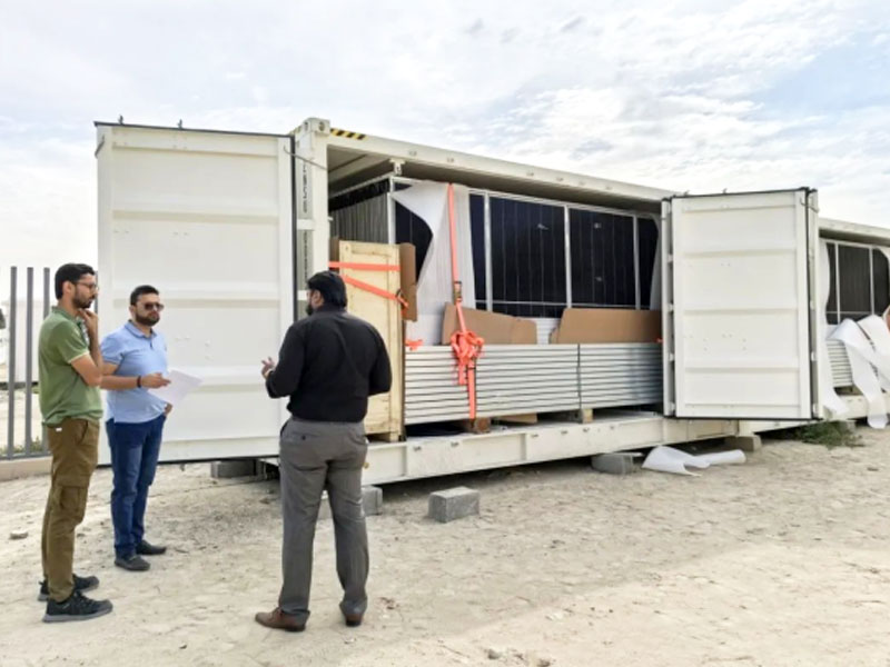 Több mint fél hónapos tengeri fuvarozás után a Senta összecsukható fotovoltaikus konténerje sikeresen megérkezett az Egyesült Arab Emírségekbe, és a közelmúltban fejeződött be a helyszíni átvétel, és nagy elismerést kapott az ügyfelektől. Ez szilárd lépés a Senta számára a nemzetközi fotovoltaikus piacon, bizonyítva kiemelkedő termékminőségét és szolgáltatási képességeit. Ezzel egyidejűleg hamarosan kiszállításra kerül a második tétel fotovoltaikus konténer is.